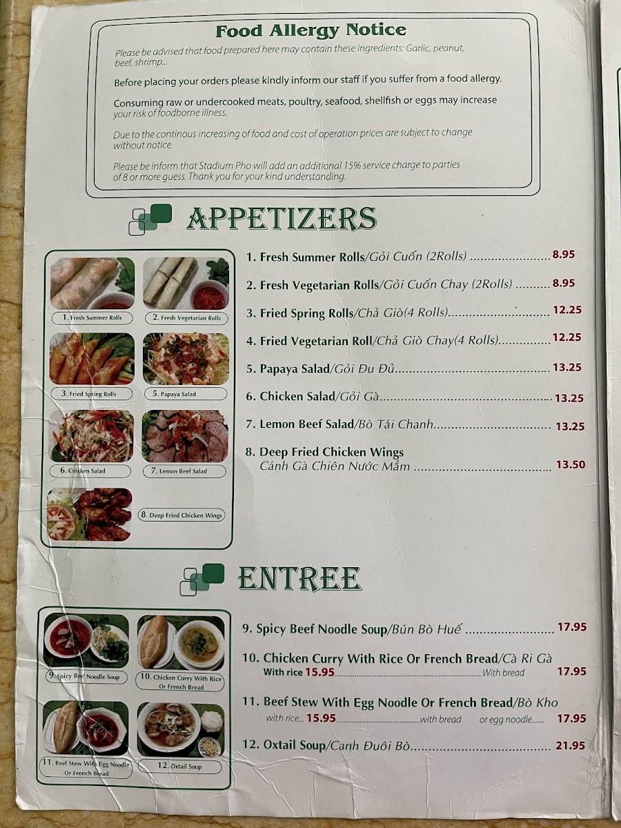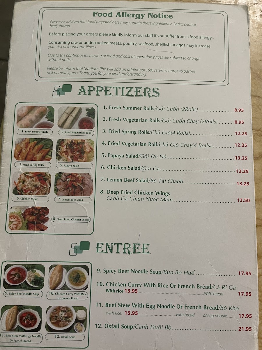 Patrons rave about the clean environment and prompt service, even during lunch rush. With a mix of traditional and innovative dishes, Stadium Phở promises a fulfilling dining experience, be it in-house or for takeout. The fragrant aromas and vibrant flavors will surely make you return for more!